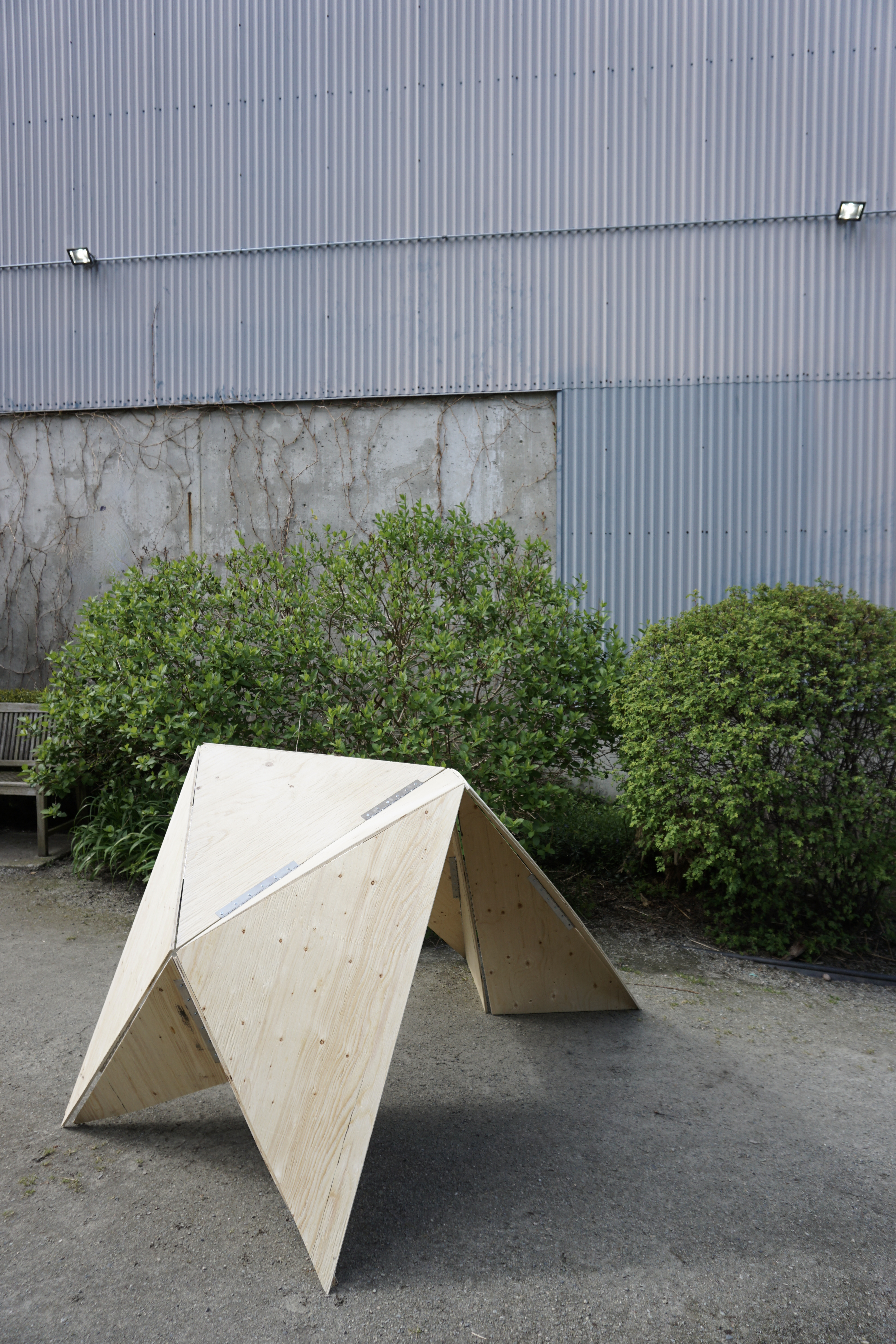 The goal of this project was to design an aesthetically intriguing structure that could serve as inclusive architecture within the built environment. The concept is straightforward: buildings with unused exterior space could mount these collapsible structures, providing temporary shelter for those in need. Once the user is finished, the structure neatly folds back into the wall.